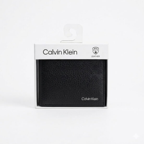 Billetera hombre Calvin Klein negra en cuero genuino con logo grabado y presentación en caja oficial. Minimalismo de lujo con el sello de una de las marcas más influyentes del mundo.